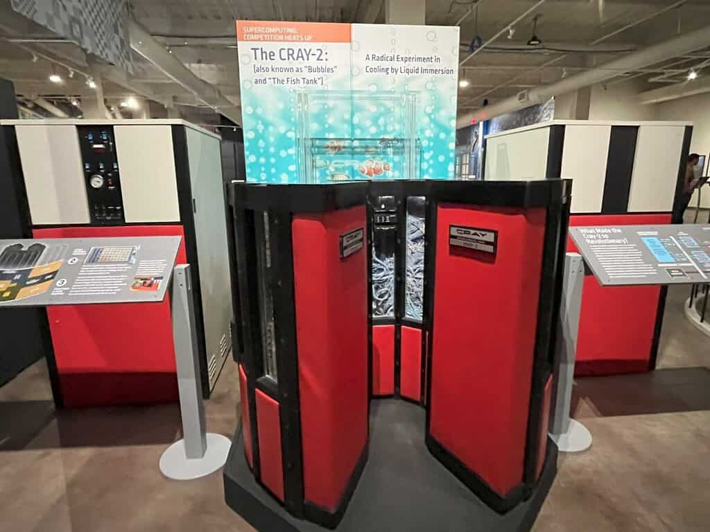 One of the newest additions to the museum is the 1985 Cray-2 supercomputer used by NASA. The 2.5-ton machine used four CPUs and had a liquid-immersion system to keep it from overheating. It was nicknamed Bubbles because of the cooling system.