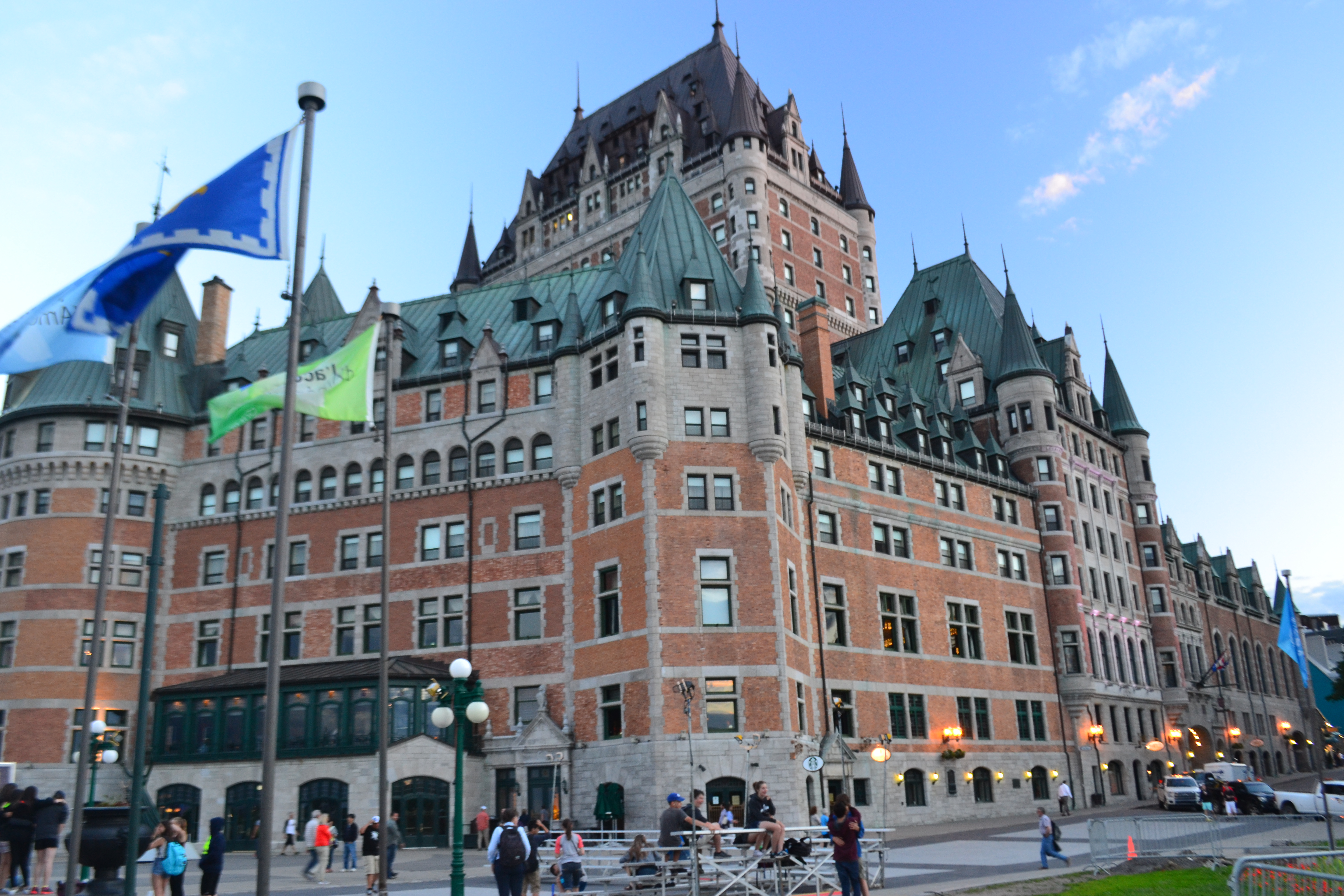 We arrived! Our day had gone incredibly smooth: we caught an earlier flight, got upgraded to a minivan at the rental car counter and now at the Chateau Bellevue Hotel, we got upgraded to a king room/suite with complementary breakfast. We were one block from the Chateau Frontenac Hotel, the iconic grand hotel in the region. Much like the Empress Hotel in Victoria, BC, I read that it is the most photographed hotel in Canada. That was our first stop.