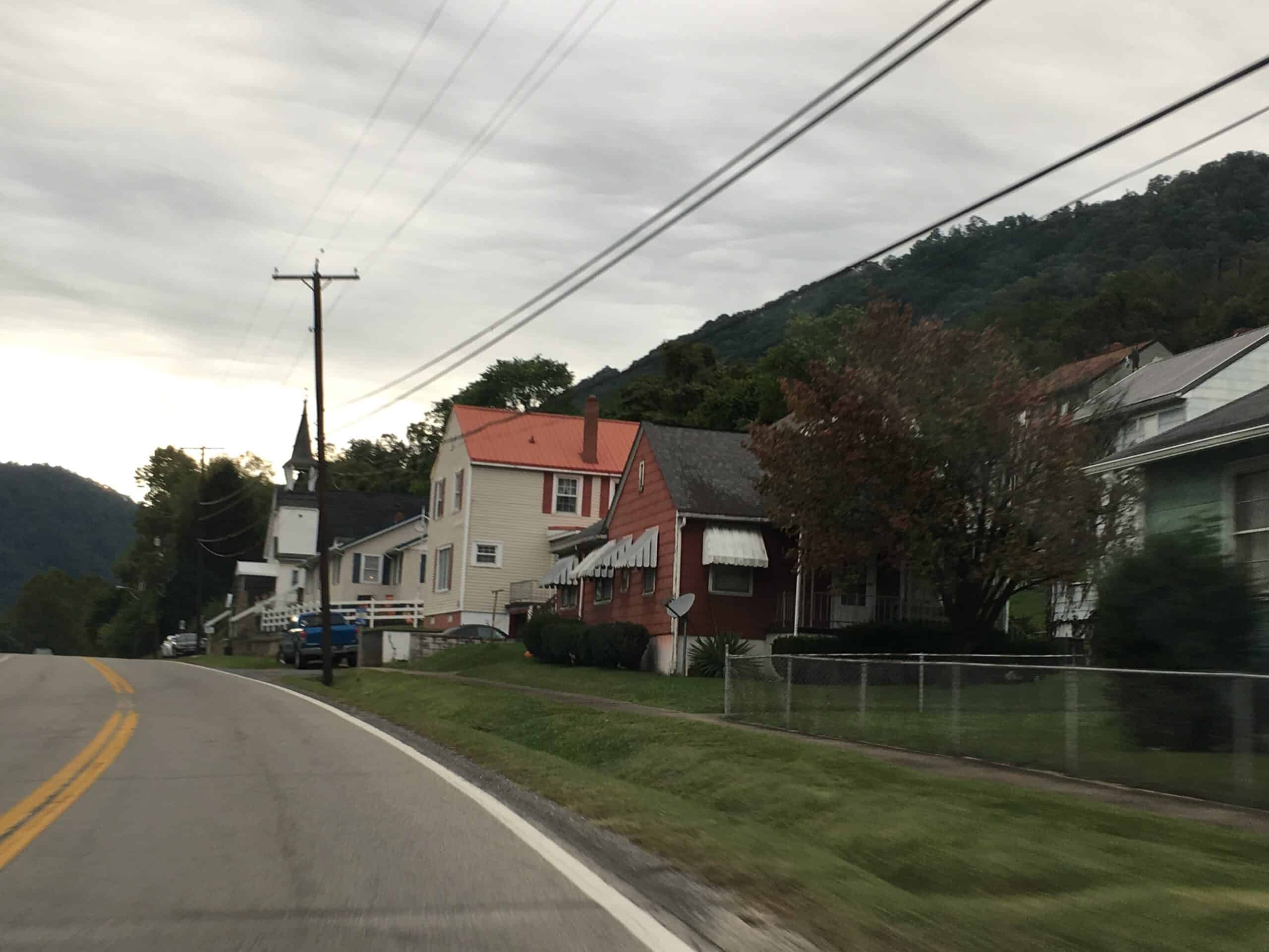 Just before White Sulphur Springs lies the cute town of Lewisburg. Cute shops and restaurants line the street and a Carnegie library, North House and former college stand erect. Had it not been for the signs “Jim Justice for Coal Miners” and signs that said “Pray for West VA” and “W Virginia Strong” you would think you were in Virginia. It didn’t seem like a coal town. In front of the North House was a wood two-story house that housed a covered wagon.