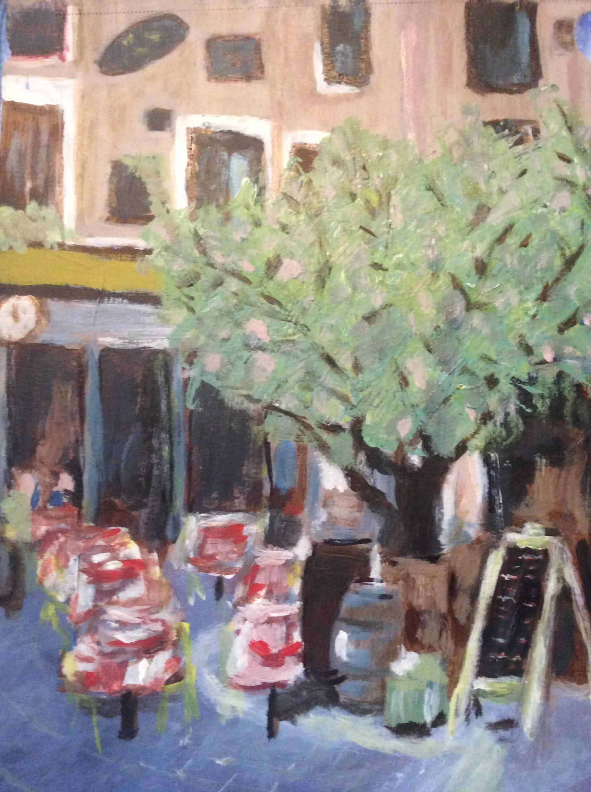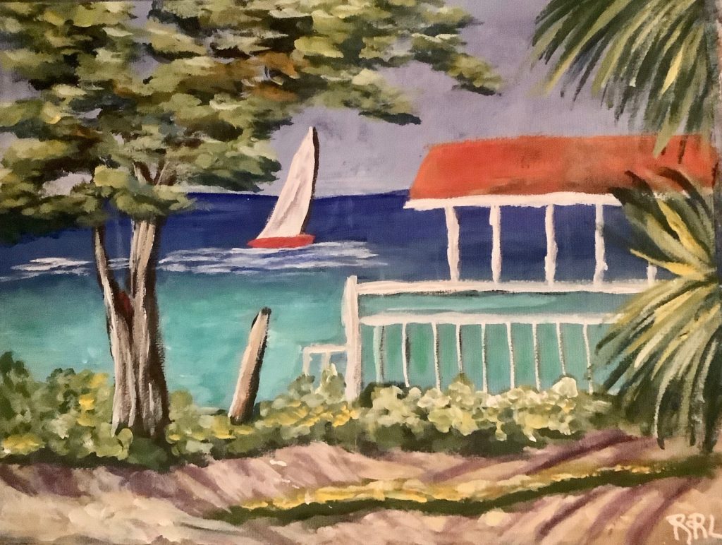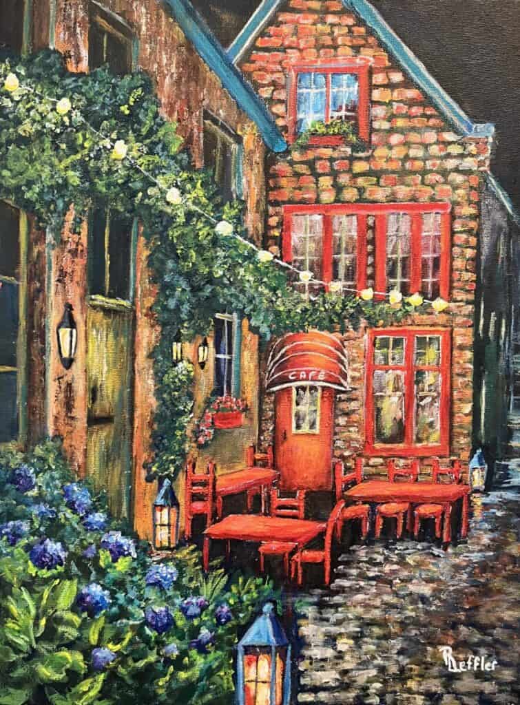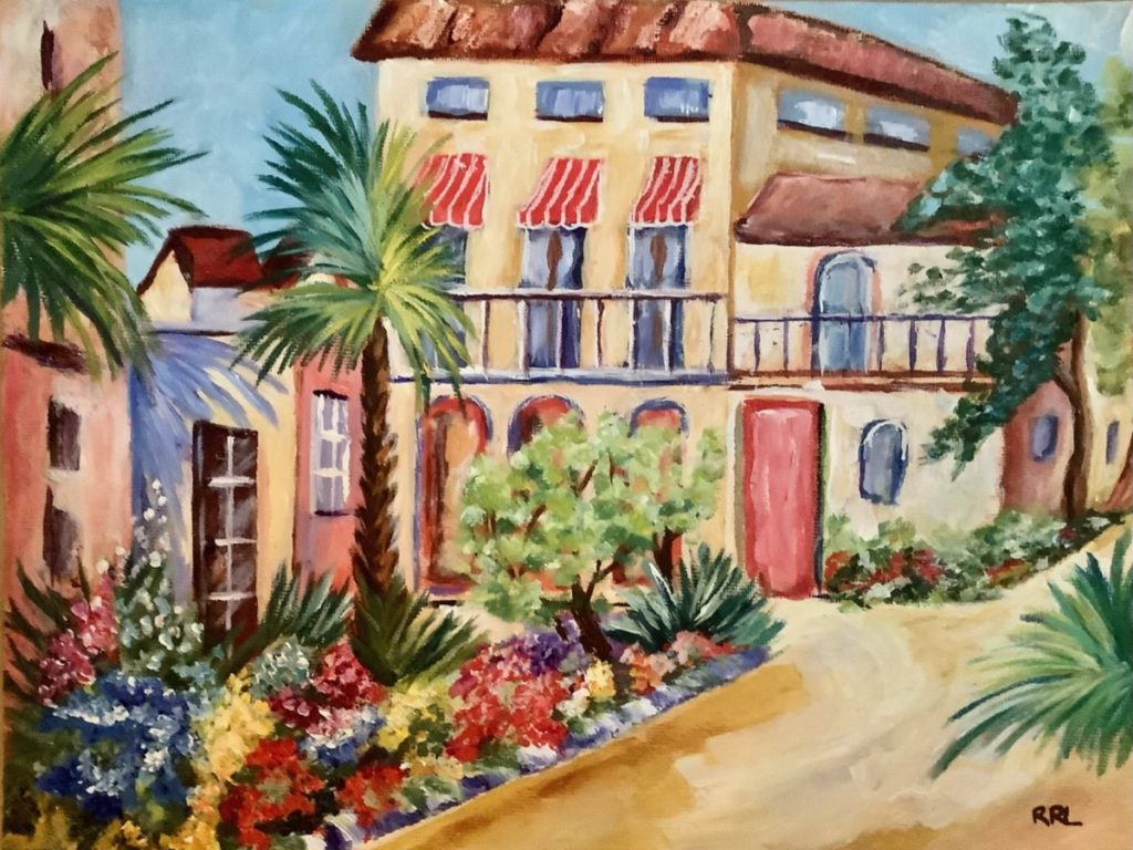 No two paintings are alike – even by the same artist! I painted both of these (non-tutorial paintings) of the Penny Farthing Inn in St. Augustine, Florida. I gave the one on the left as a gift to the owner.