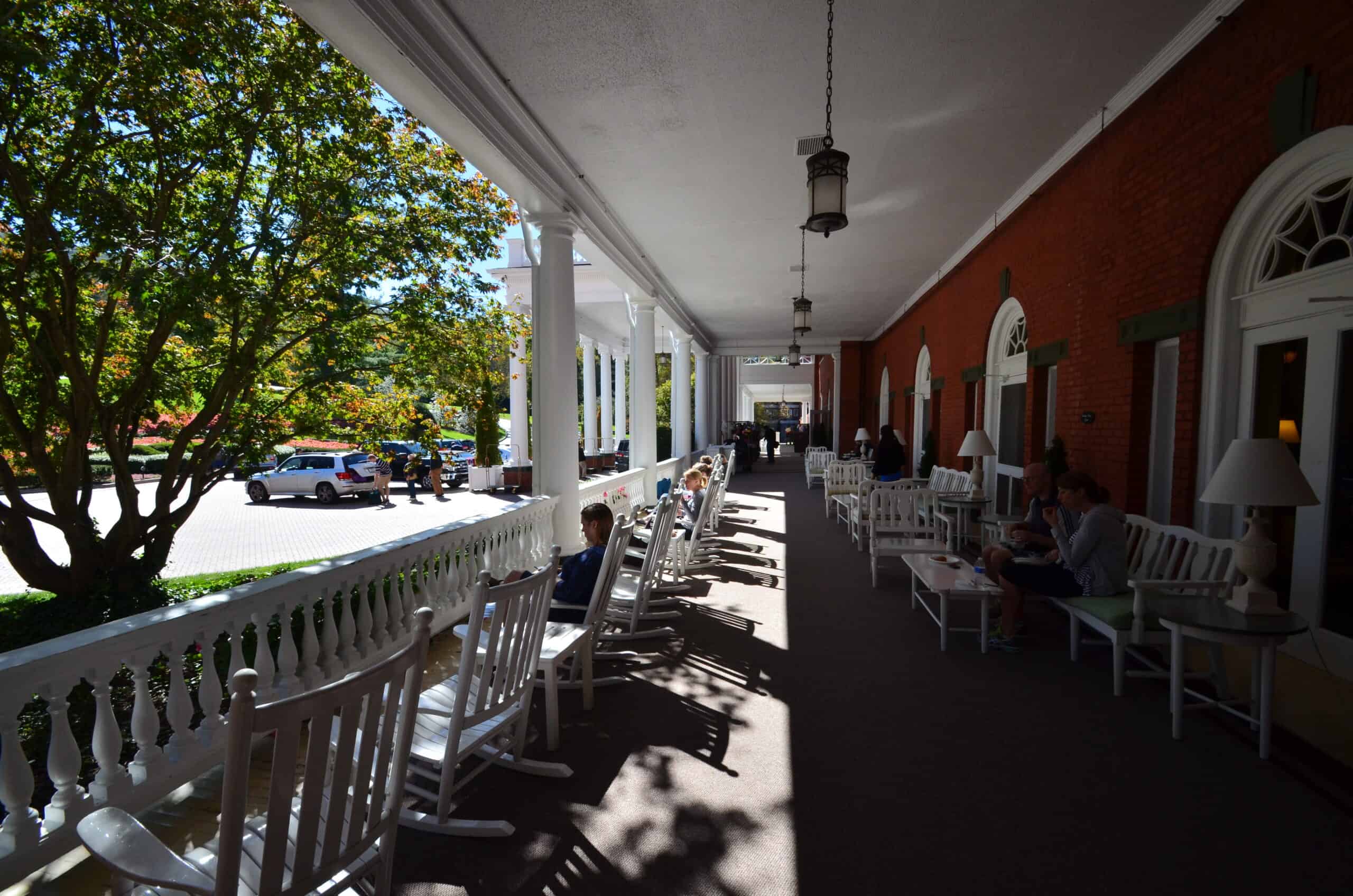 Founded in 1766, the Omni Homestead rivals the Greenbriar. Remember these were both in Viriginia when founded as West Virginia didn’t become a state until 1861. A little less pretentious and right in the middle of town, we drove through a residential area (reminiscient of the Grove Park Inn) onto the grounds into a parking lot. the massive red-brick, Federal style hotel looked very Thomas Jefferson. The sun glistened on visitors sitting in rocking chairs on the front porch.